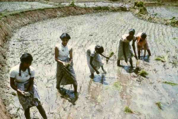 Selected rice grain is first grown in a specially fertilized bed. Once these seedlings are six to eight inches tall, women of the community will transplant the seedlings two to three at a time, spacing them a hand span apart. This is back-breaking work and, the women who transplant rice seedlings try make light of this work by enjoying light hearted contests (poetry). There is a genre of popular poetry in Sri Lanka called "goyam kavi" (poetry of rice seedlings). Lunch is cooked by the elder women and is always brought to the field, and enjoyed picnic fashion. Morning and afternoon tea is also provided, always with some type of home made sweets, and the ever popular "bulath wita" (mixture of betel leaf, shredded areca nut and spices) is always at hand.