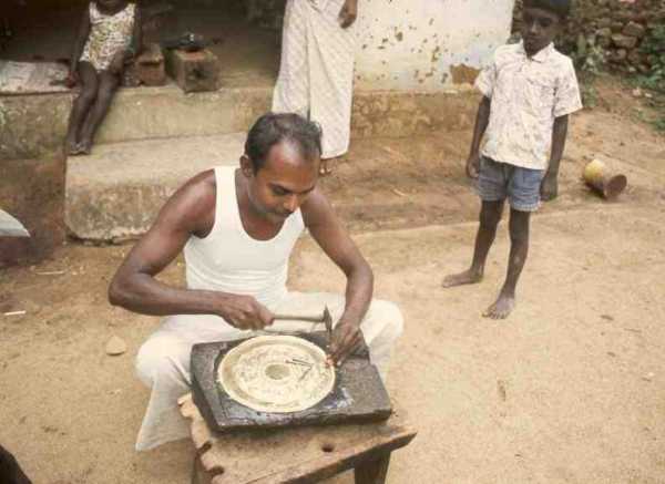 Another product that comes out of these small villages hidden away in the central highlands, and seen in most Sri Lankan households, both abroad and at home, are the popular engraved / embossed trays. Mostly hammered out of brass, or copper, and sometimes inlaid with silver, or other precious metal, these trays are as individual as the craftsmen who create them. The designs used in these trays are very similar to the designs in the ancient moonstones that are found at the temples and palaces in the ruined cities.
